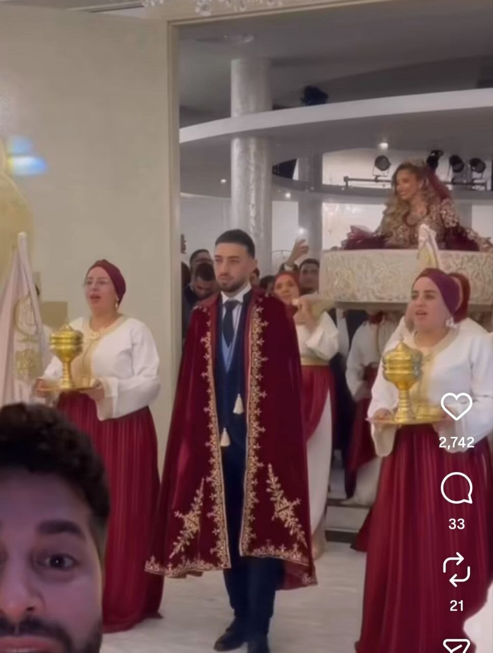 ورود منیر با لامبورگینی لوکس، چندین لباس متفاوت برای عروس، رقصهای پرشور، موسیقی زنده و کیک بزرگی که با حروف اول نام این زوج تزئین شده بود.