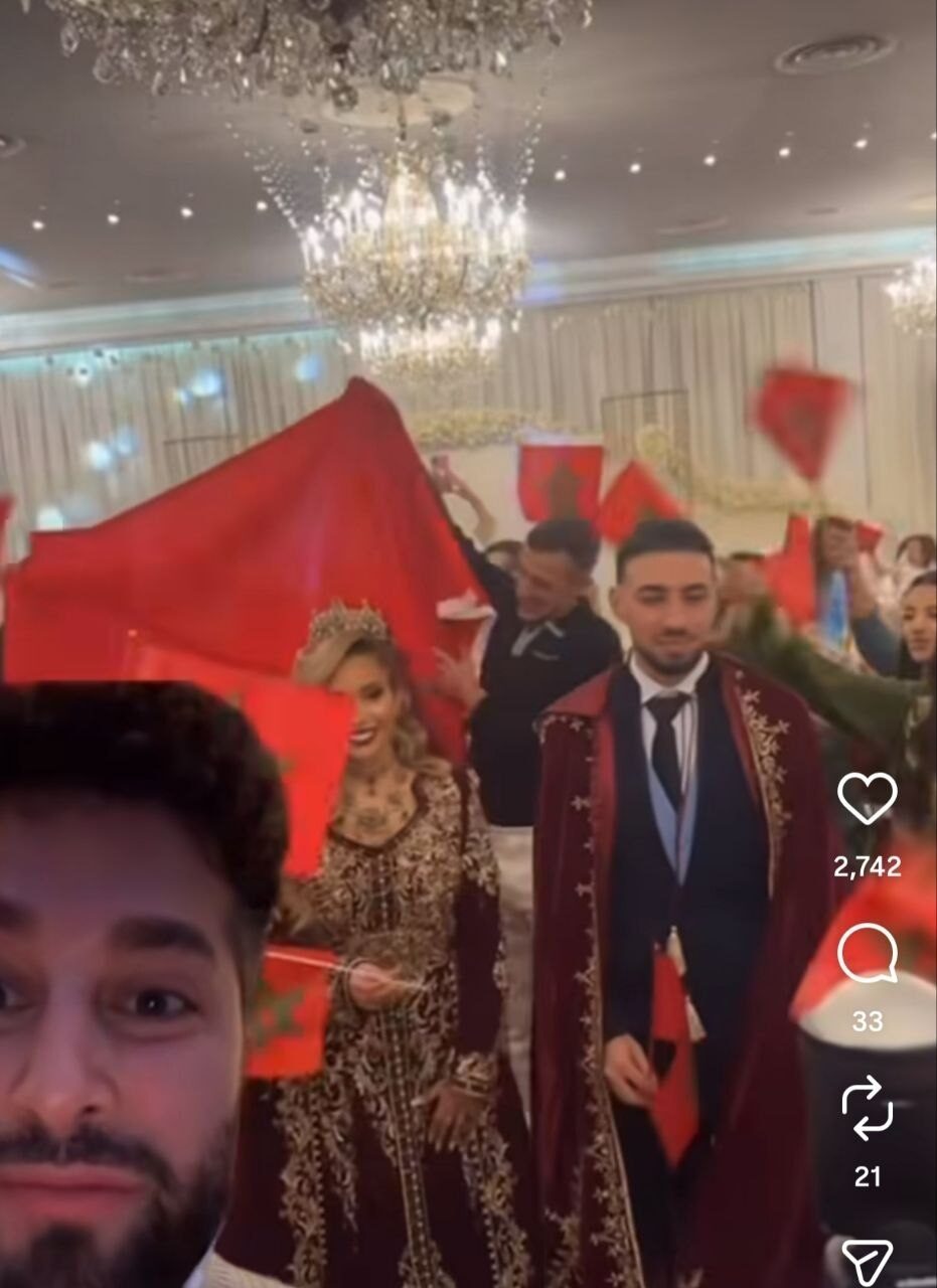 تصاویر منتشرشده نشان میدهد منیر الحدادی در طول مراسم لحظهای آرام و قرار نداشته و مدام در حال رقص و شادی در کنار دوستان و اعضای خانوادهاش بوده است. نکته جالب توجه، حضور پررنگ پرچمهای مراکش در مراسم بود؛ نمادی از ریشهها و هویت این بازیکن.